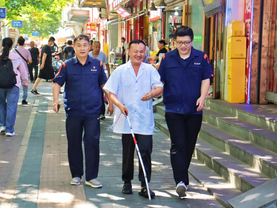 9月15日一早,柳明富与同事一同接上陶先生,协助他购买车票、搬运行李,耐心陪同候车,并特意为他准备了济南特色的点心和水果。候车期间,大家亲切地与陶先生交谈,详细了解他的日常生活与出行需求。陶先生感动地说:“虽然我看不见,但社会的温暖我能‘听’得到、‘摸’得着。谢谢你们,让我感受到了济南这座城市的温暖!”